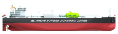 该型船由上船院设计,配置3个A型液货舱和2个甲板罐,设计温度零下50度,可同时装载两种货品,具备氨加注ready功能,满足CCS ice class B级要求、EEDI三阶段要求,设计领先、技术卓越、绿色环保且高效节能,为船东提供了更多的运营选择,具有较强的市场竞争力。