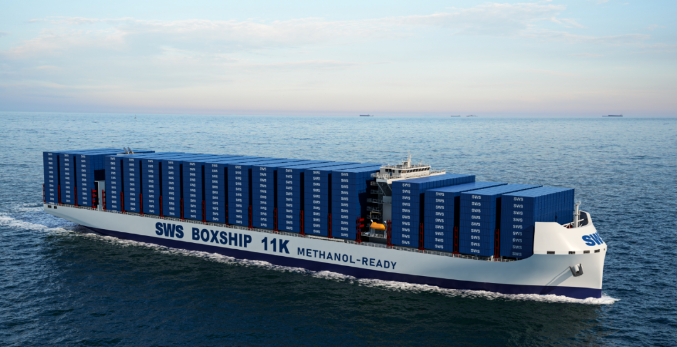 本次签约的大型集装箱船,是外高桥造船自主研发设计的新一代绿色环保型大型集装箱船。该型船是为客户量身定做,在常规燃料动力双岛设计的基础上,新增预留了甲醇燃料动力系统。该船可装载11000个20英尺标准集装箱,配置脱硫塔,以及挡风墙等多个脱硫、降碳、节能和减阻装置,将极大优化快速性,大幅降低油耗,减少碳排放,降低运营成本。