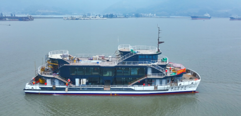 近日,七〇二所控股无锡东方船研高性能船艇工程有限公司承建的国内电池容量最大海上纯电客船“鹭江会客厅”下水。作为国内纯电船舶标杆作品,该船搭载大容量锂电池组,配备双电机与双全回转对转舵桨系统,并集成智能辅助航行系统,实现航行零排放、低噪音、无污染,全面践行绿色低碳发展方向。船舶采用多业态融合运营模式,灵活适配海上观光、商务会议、新品发布、特色餐饮、定制包船等多元场景,满足不同客群个性化需求。
