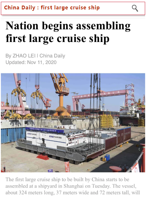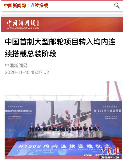 昨天(11月10日),中国船舶集团旗下外高桥造船建造的中国首制大型邮轮,迎来里程碑节点转入坞内连续搭载总装新阶段的消息,在业界引起广泛关注,也再次成功吸引新华社、央视新闻等各大央媒的目光!