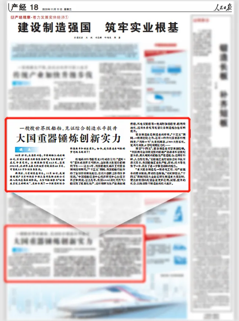 今天,人民日报产经专版在《产经观察·着力发展实体经济》第一期报道《建设制造强国筑牢实业根基》中将镜头对准了中国船舶集团。