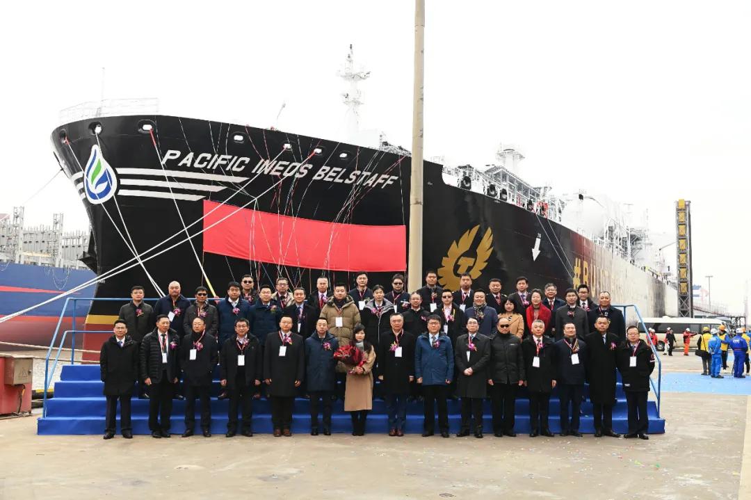 此外,江南造船还有3艘99000立方米VLEC同型船在建,计划于明年全部交付。“PACIFIC INEOS BELSTAFF”号是江南造船2021年度交付的最后一艘产品,标志着江南造船圆满完成全年12型30艘产品的生产任务。