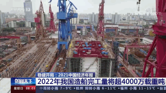 2021年,中国造船三大指标全面增长,造船完工量、新接订单量、手持订单量保持全球第一,实现了“十四五”的开门红。
