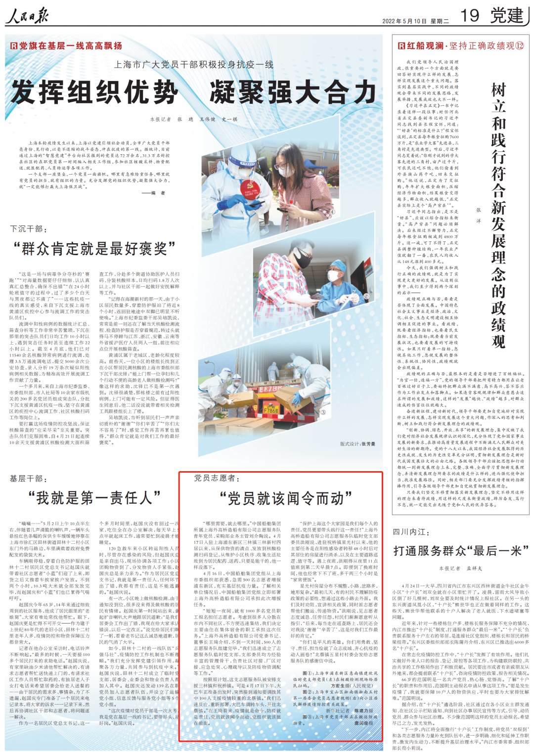 一个支部一座堡垒,一个党员一面旗帜。哪里有急难险重任务,哪里就有党员的担当、就有组织的力量。充分发挥党的组织优势,凝聚强大合力,就“一定能够打赢大上海保卫战”。