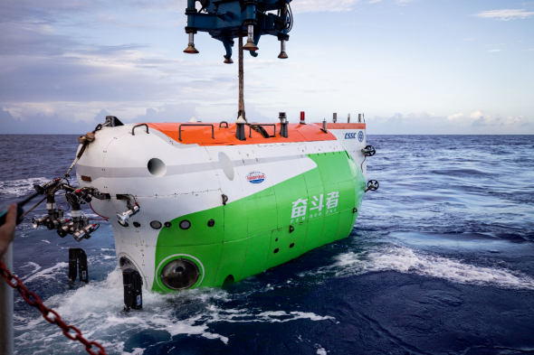 △潜入海底万米的深潜器“奋斗者号”