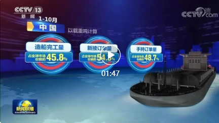 数据显示,1—10月,中国造船完工量、新接订单量、手持订单量以载重吨计算,分别占全球市场份额的45.8%、54.3%和48.7%,继续保持全球第一。此外,丝袜av