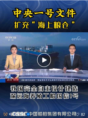 在今年发布的中央一号文件中,提出要发展养殖工船等深远海养殖,这是中央一号文件首次在内容中明确提及具体船型。