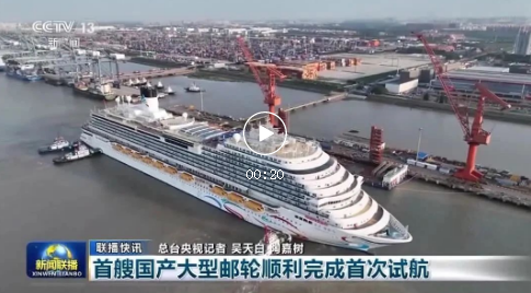 7月24日晚,首艘国产大型邮轮“爱达·魔都号”完成第一次试航所有试验项目比原计划提前一天凯旋,人民日报、新华社、中央电视台等中央主流媒体进行了报道。