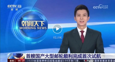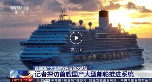 7月25日 央视《新闻联播》 7月25日 央视《朝闻天下》 7月25日 央视《新闻直播间》 航速测速 感受邮轮强劲动力 记者探访首艘国产大型邮轮推进系统 7月25日 新华社 7月26日 人民日报 7月26日 央视《朝闻天下》 记者独家记录首艘国产大型邮轮首次试航 一日四餐 保障1200多名试航人员饮食 7月26日 中国日报