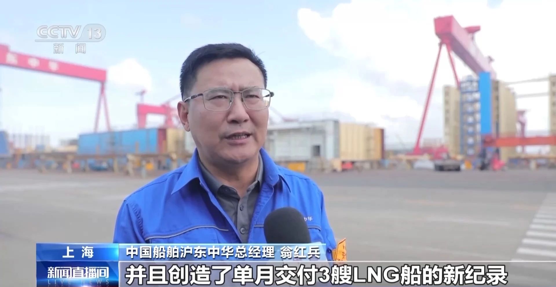 今年9月,在沪东中华造船厂,一个月就交付了3艘LNG船,创造了中国船舶建造史上单月交付的新纪录。