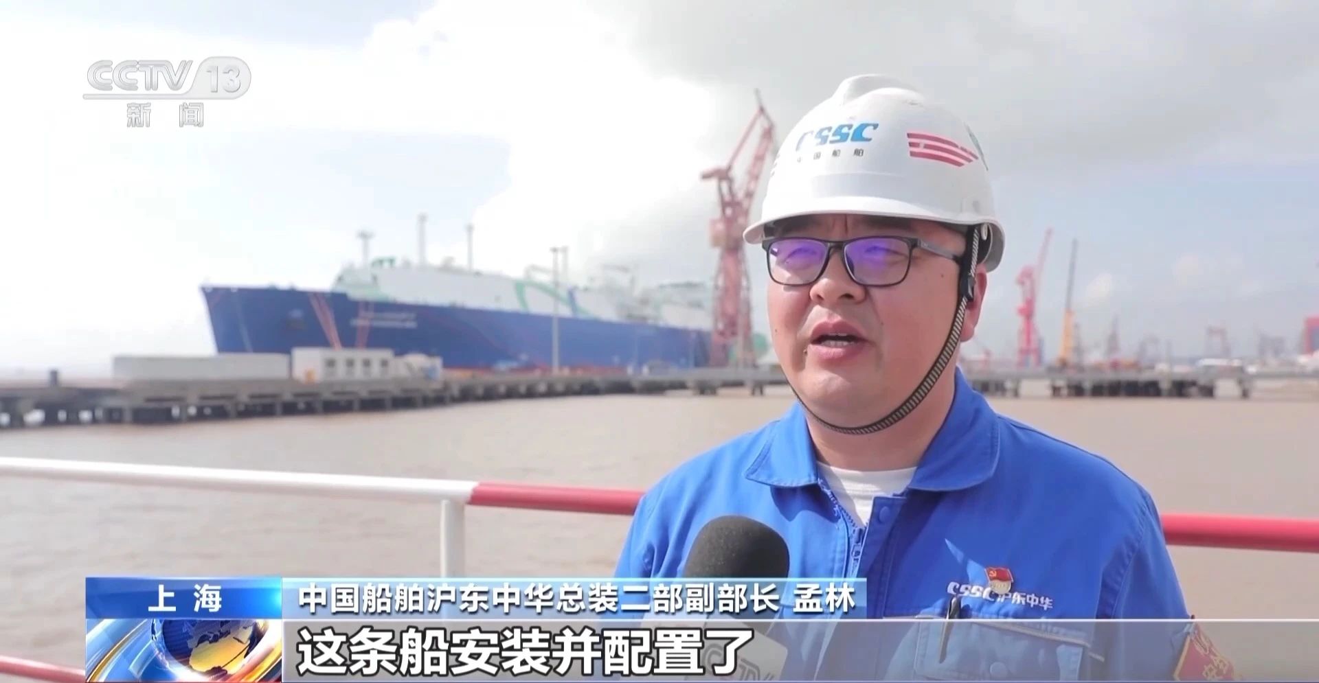 中国船舶沪东中华总装二部副部长 孟林:这条船安装并配置了全球首台套再液化装置,国内自主研发的废气再循环系统,能够有效地提高能效,也能够满足国际上的T3排放标准。
