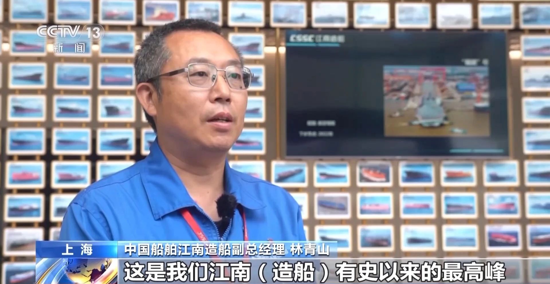 中国船舶江南造船副总经理 林青山:今年前三季度,我们在民品接单上已经达到了400亿元人民币,这是我们江南造船有史以来的最高峰。特别是目前在技术驱动的船市旺盛的基础上,我们对未来市场都是充满了信心。