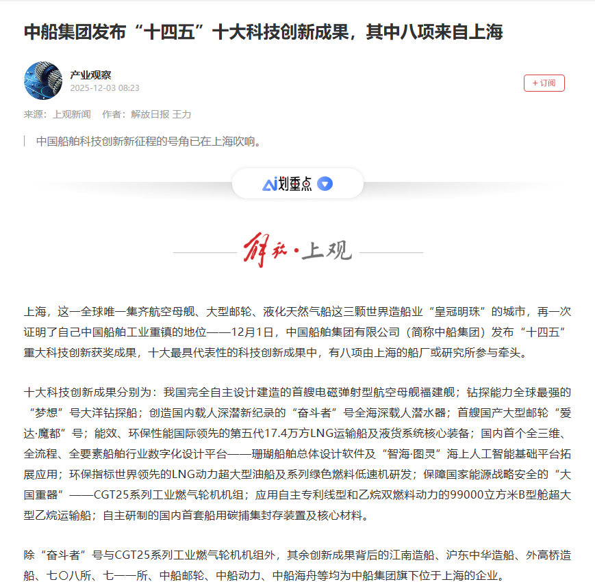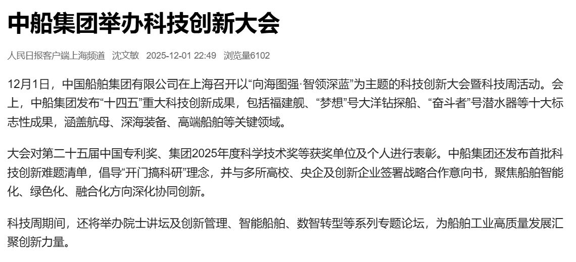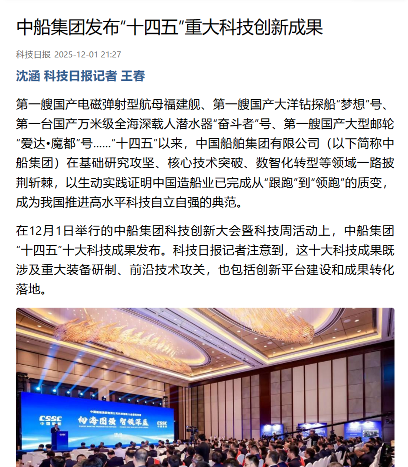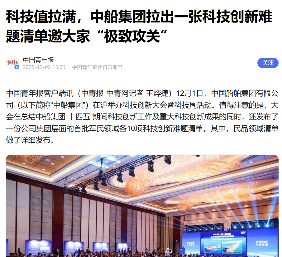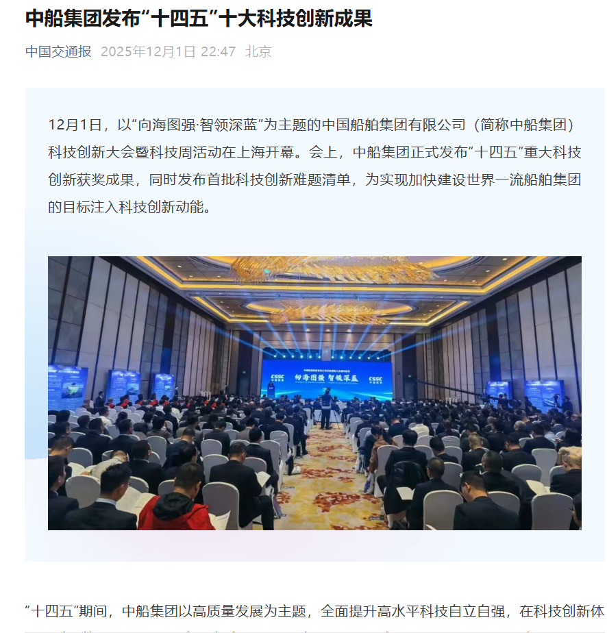 12月1-5日,中国船舶集团有限公司在上海举办了科技创新大会暨科技周活动。