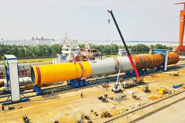 从外观来看,单桩如同一个“巨无霸”的钢圆筒,但要制作如此大管径、板厚的钢圆筒并非易事。
