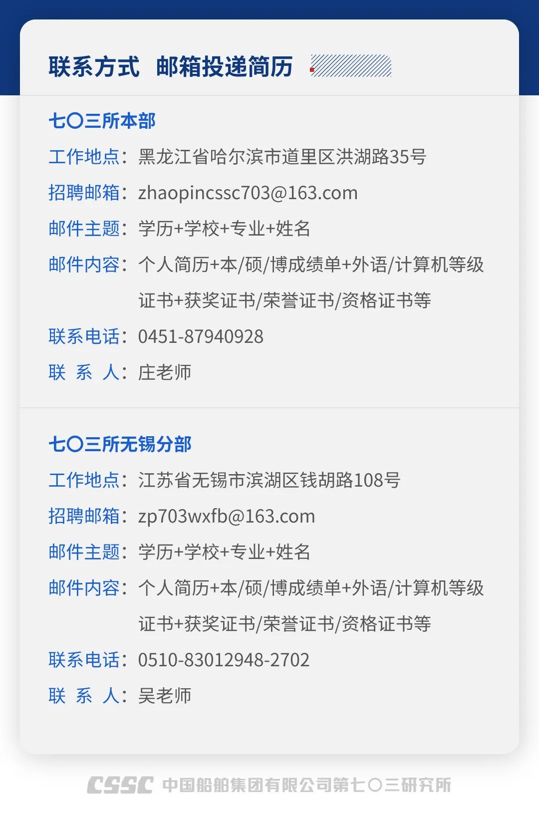 中国船舶七〇三所2022届夏季招聘及2023届提前批招聘开启!