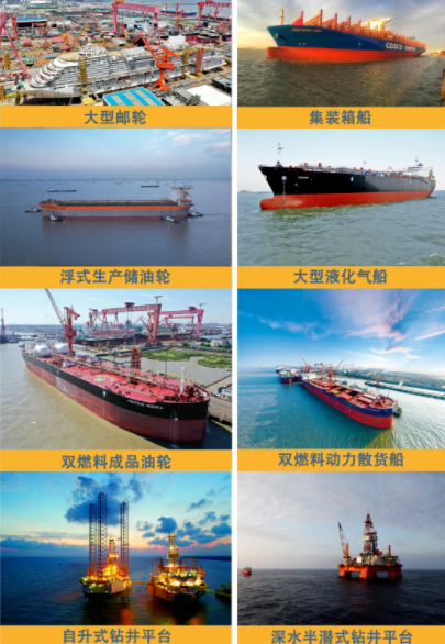 公司主要经营范围覆盖民用船舶、海洋工程、船用配套等领域,在大型邮轮、好望角型散货船、大中型原油船、超大型集装箱船、超大型液化气船、海上浮式生产储油船(FPSO)、半潜式/自升式钻井平台、海工辅助船(PSV)等船海产品领域的设计建造能力突出。截止2023年1月,公司累计完成交付的各类船舶、海工产品530余艘(座),持续引领全球船舶海工装备发展潮流。