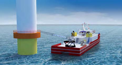 舰船低压直流综合电力技术应用到民船领域。直流组网电力推进系统设备具有重量更轻、占地面积更小、动态响应能力更优的技术特点,不仅解决了双体船机舱空间小的问题,还可充分满足在风场恶劣海况下对船舶动力定位(DP-2)、登乘系统的高系统动态响应能力的技术要求,使该船舶的特性进一步提升。据悉,此艘50M 风电运维船设计为双体船,总长49.9 米,排水量约600 吨,是目前国内最先进的创新型高端风电运维船。
