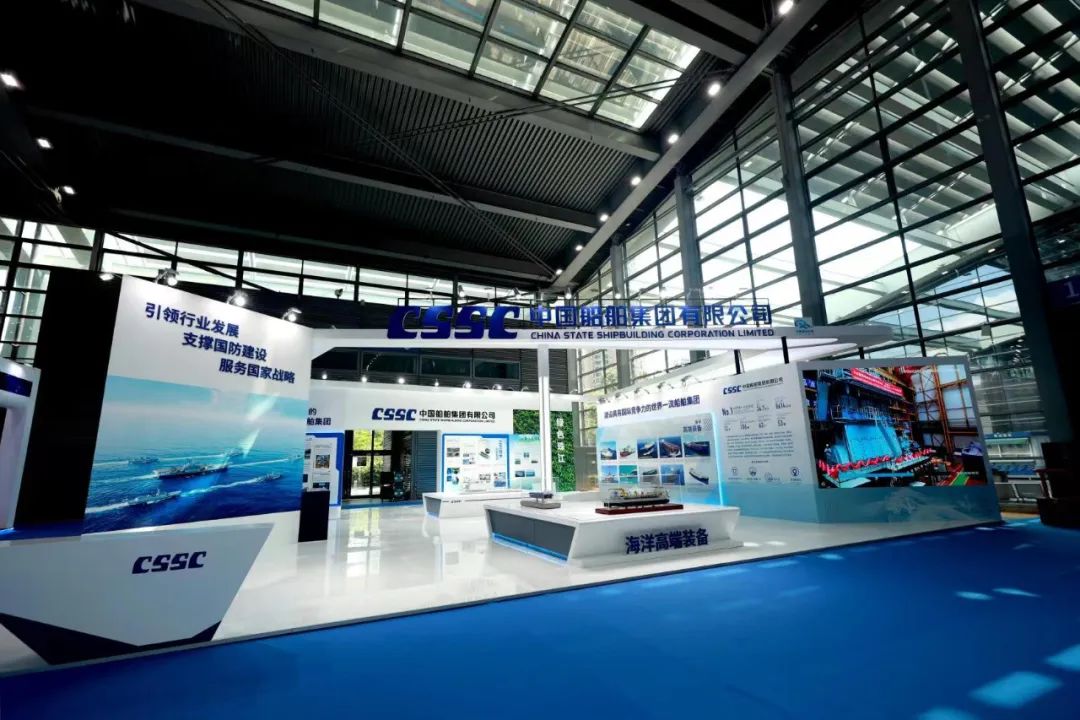 在大会的展示环节,中国船舶集团展台通过集团总体、海洋防务、海洋高端装备、工艺技术创新发展、海洋经济新业态、工匠风采、“奋斗者”号、绿色珠江八个板块,分别展出了7500立方米液态二氧化碳运输船、半潜式全自动现代化三文鱼深海养殖装备、合金钢中间轴在大型油船上的首次应用等55项创新成果,并展示了28位工匠代表的风采。集团公司展台采用开放、通透的布局,突出中国船舶品牌元素,集中展示集团公司立足新发展阶段,贯彻新发展理念,在战略重组后以高质量发展为主题,壮大主业实业、加快推动船海产业向中高端转型发展,以及大力弘扬军工精神和劳模精神、劳动精神、工匠精神,强化自主创新的整体实力和在推动低碳环保、区域经济发展等方面的最新成果。集团公司还通过本届大会“互联网+展会”模式开设的“云展会”,让参观者线上云游中国船舶展台,扩大企业品牌影响力。