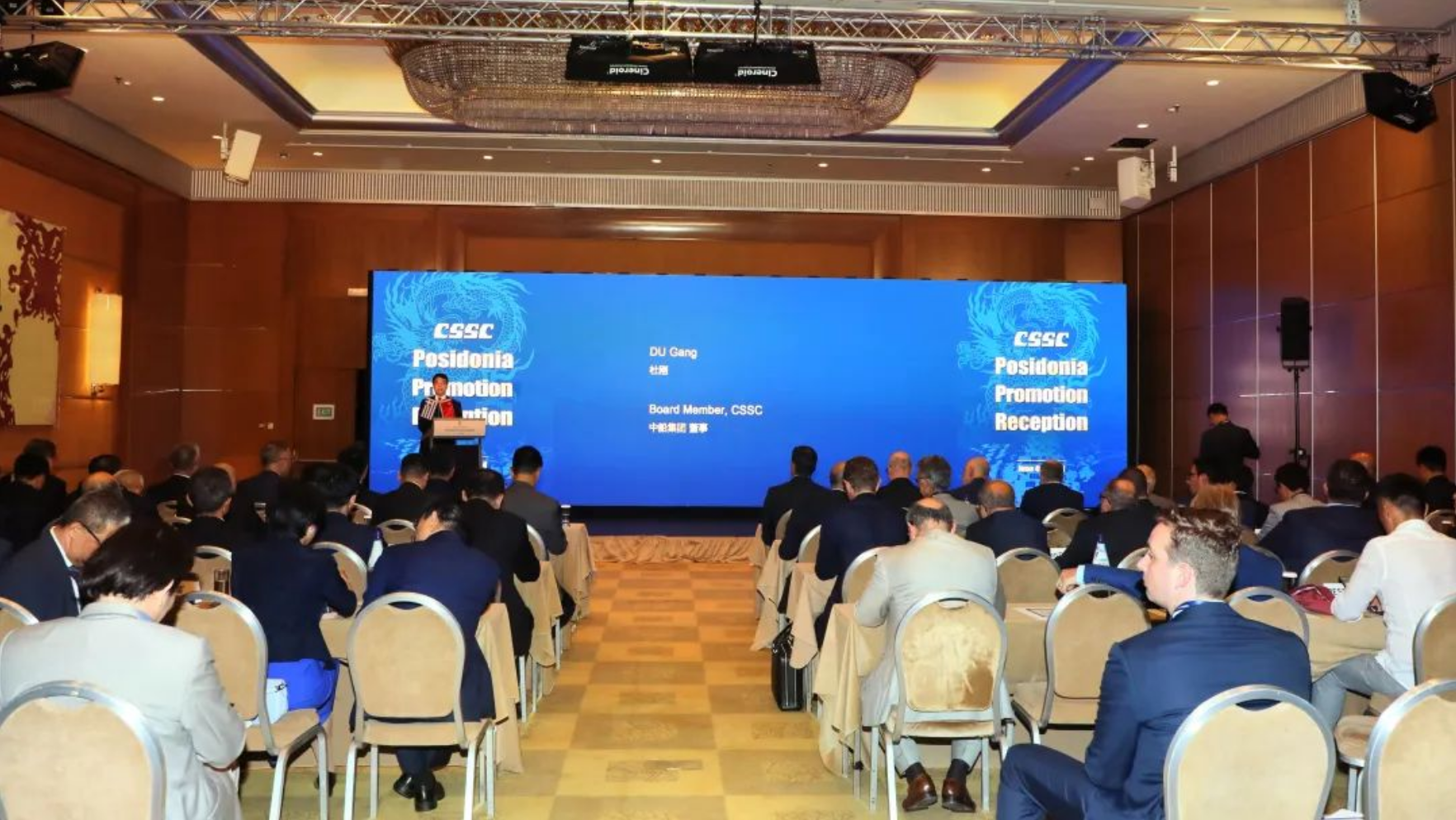 6月4日,在希腊国际海事展期间,中国船舶集团有限公司在希腊雅典成功举办了绿色船型及机电产品推介会。中国船舶集团党组副书记、董事杜刚出席会议并致辞。