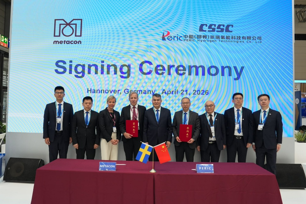 展会期间,丝袜av 与瑞典Metacon公司举行7.5MW碱性制氢设备项目合同签约仪式,并举办绿色智能产品技术现场推介等多场专题活动,主动高效开展产品技术服务推介和CSSC品牌国际化推广,持续吸引国际客户前来交流探讨合作机遇。在展会内接待拜访多家现有及潜在合作企业,深化既有合作共识、拓展合作新场景,为后续进一步提升共赢合作水平创造有利条件。