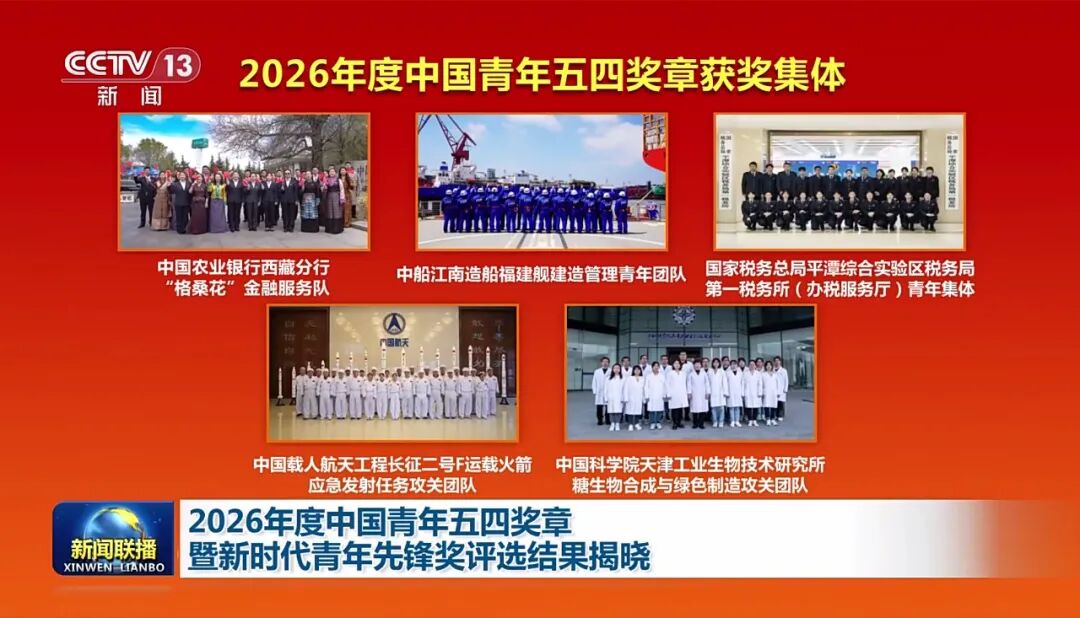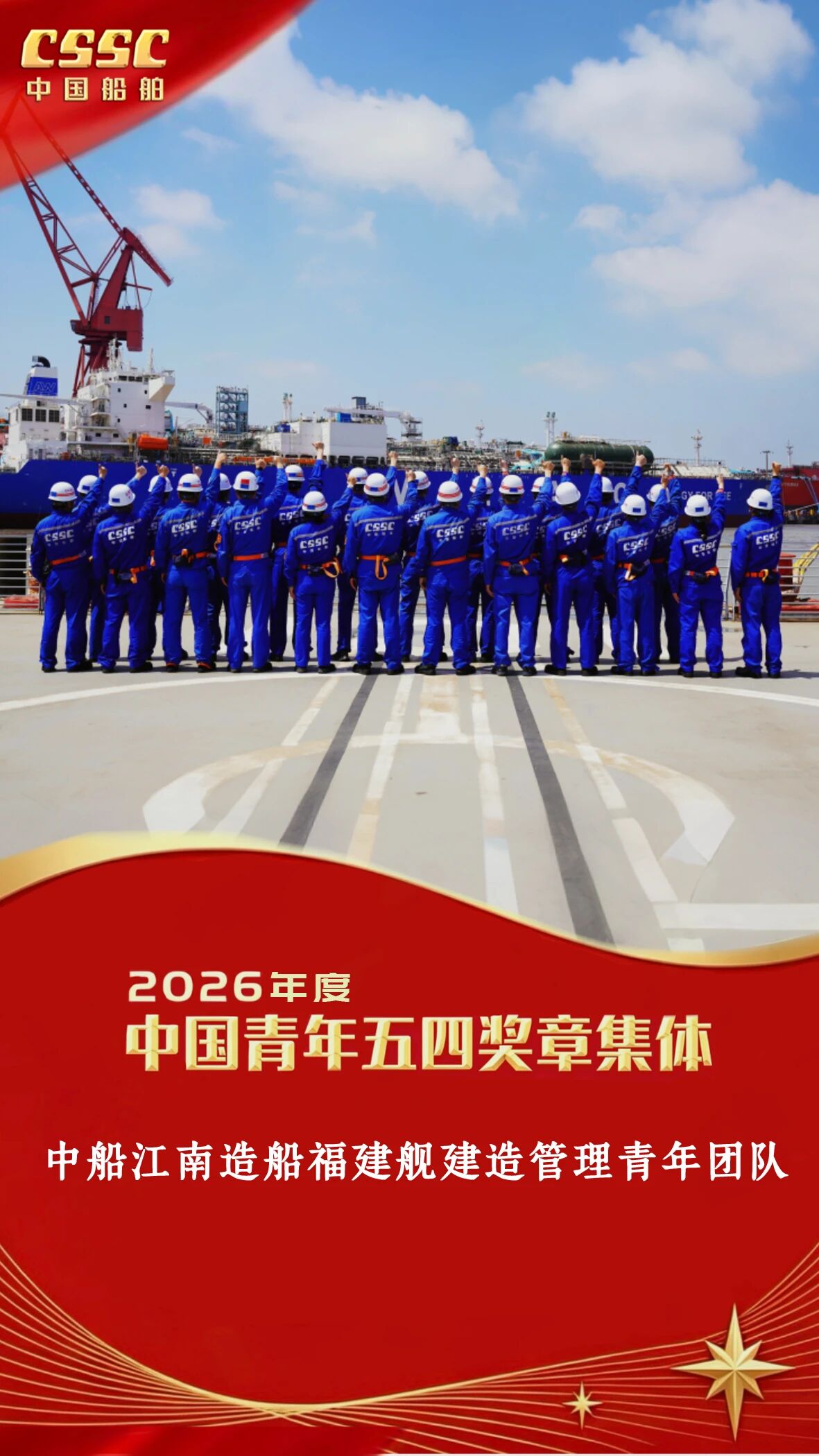 4月27日,共青团中央、全国青联颁授2026年度中国青年五四奖章暨新时代青年先锋奖。中国船舶集团有限公司江南造船福建舰建造管理青年团队代表现场领奖并参加倡议。