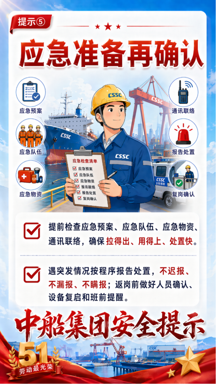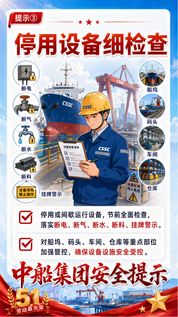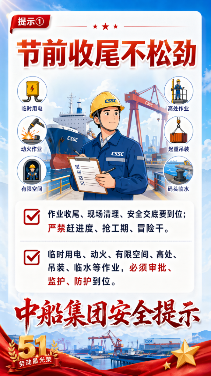 安全无小事,假期不放松。需紧盯节前收尾、防汛防台、设备停用、消防用电、应急准备、值班值守等重点环节,引导广大干部职工增强安全意识,做好出行防护,共同确保节日期间安全稳定、平安有序。