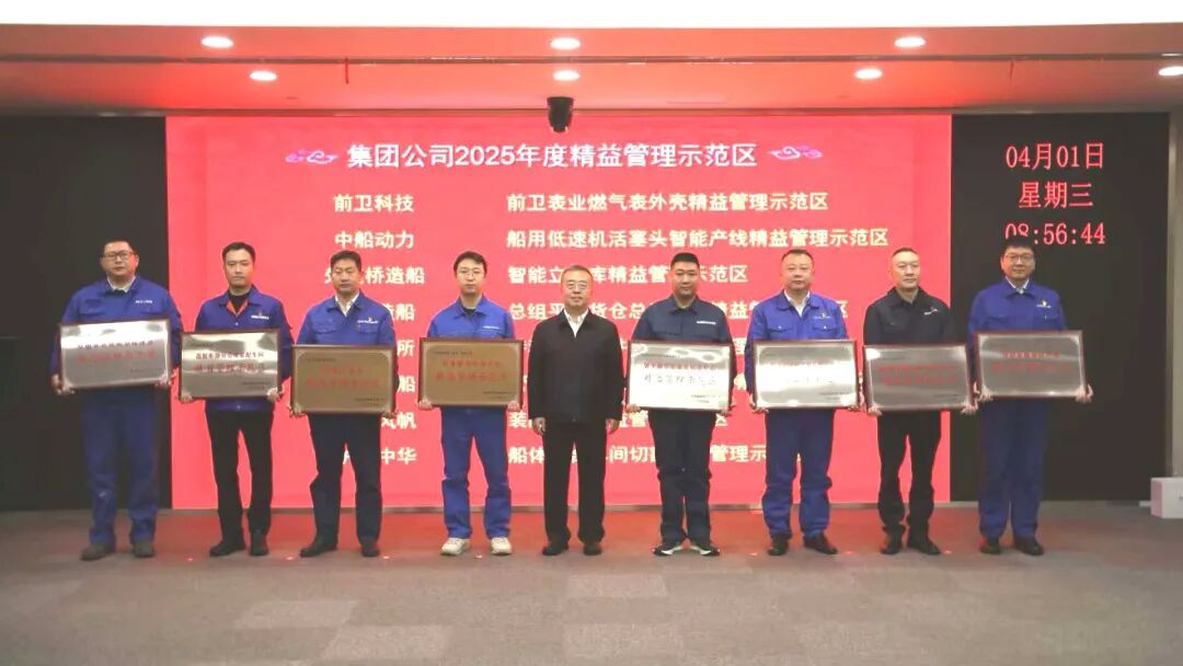 2025年度精益管理示范区授牌。经济运行部介绍集团公司精益管理工作推进情况,外高桥造船、中船动力、中南装备、江南造船作精益管理工作情况交流。