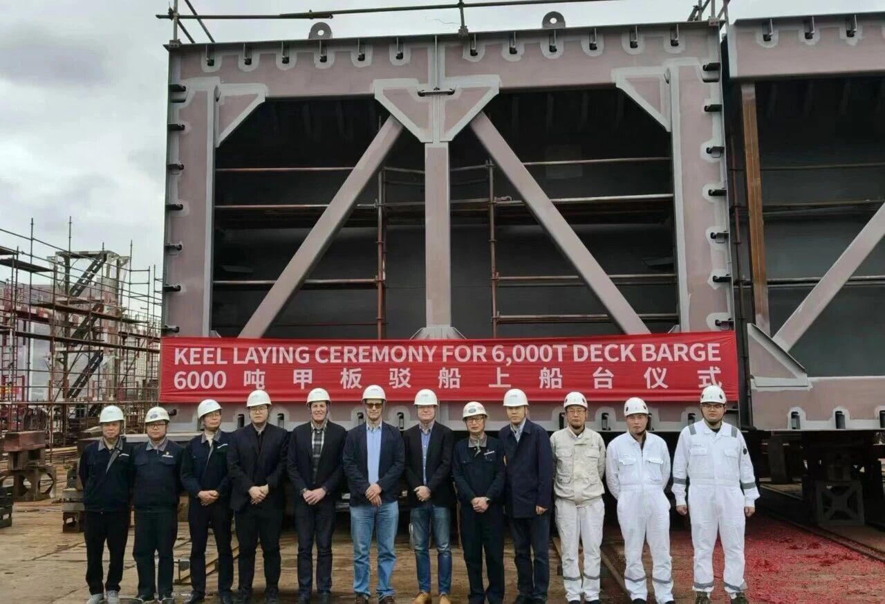近日,由中船贸易上海公司与中船桂江造船有限公司联合承接的6000吨甲板驳船顺利达成上船台节点,标志着该项目正式从分段建造转入船台合拢阶段,为该船的按期保质交付奠定了坚实的基础。