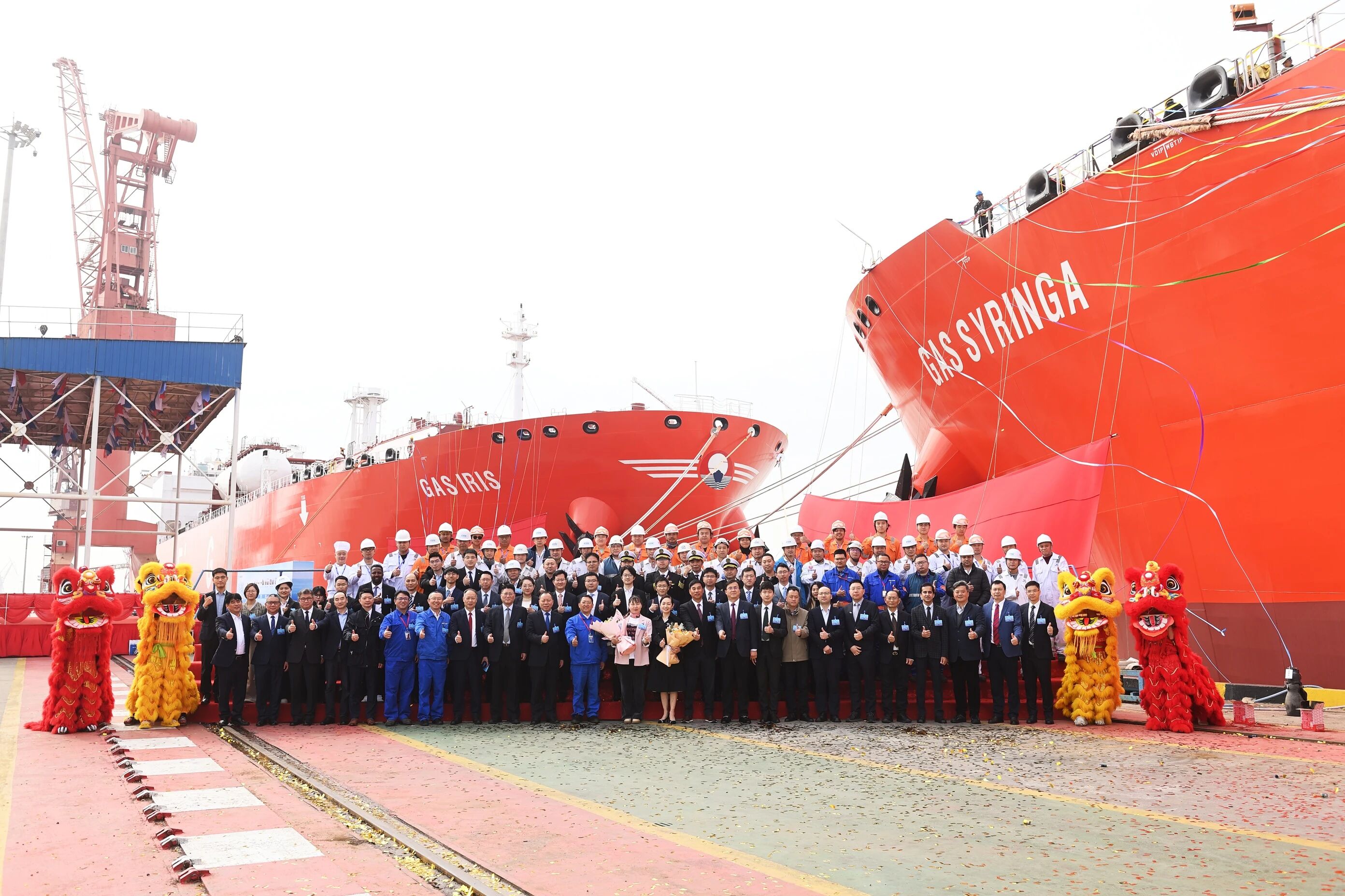 3月26日,中国船舶集团有限公司旗下江南造船为西南海运建造的2艘99000立方米超大型乙烷运输船(VLEC)“GAS IRIS”号和“GAS SYRINGA”号同日命名,其中“GAS IRIS”号还于当日签字交付。